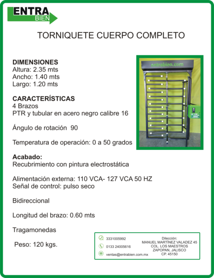 Torniquete Cuerpo Completo Multimoneda para acceso fabricado en acero negro con pintura electrostática y monedero multimonedas (acepta todo tipo de monedas, NO regresa cambio), Totalmente termiado y listo para funcionar